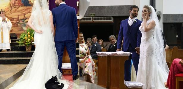 Após entrar na igreja, o gato preto chegou perto do altar e se aconchegou na cauda do vestido de Bruna, roubando toda a cena. "Eu e o Timóteo nos dividimos para registrar esse momento. Tirei a foto de trás e o Timóteo foi flagrar a expressão da noiva ao saber que o que estava pesando no vestido não era o véu, mas sim, o gatinho", disse.